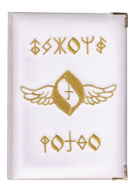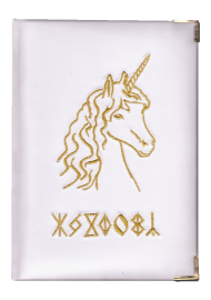 Наобложке вышит первообраз “Единорог” и рунная надпись “Эйсаль”, что в переводе с рунного означает “Тайна”.